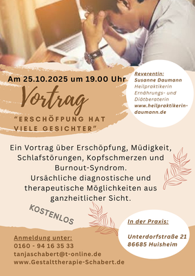 am Samstag, den 25,10.2025 um 19.00 Uhr "Vortrag über Erschöpfung"
